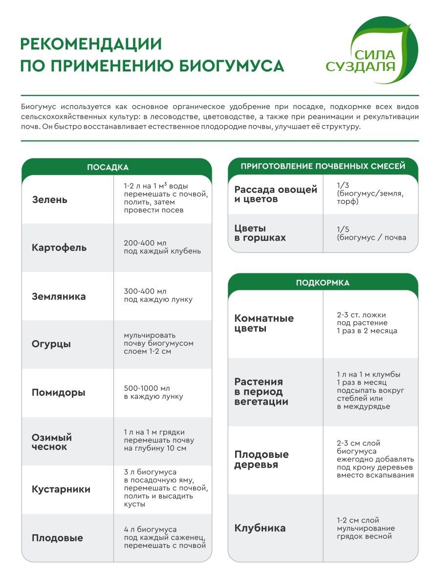 Преимущества Биогумуса Сила Суздаля:
