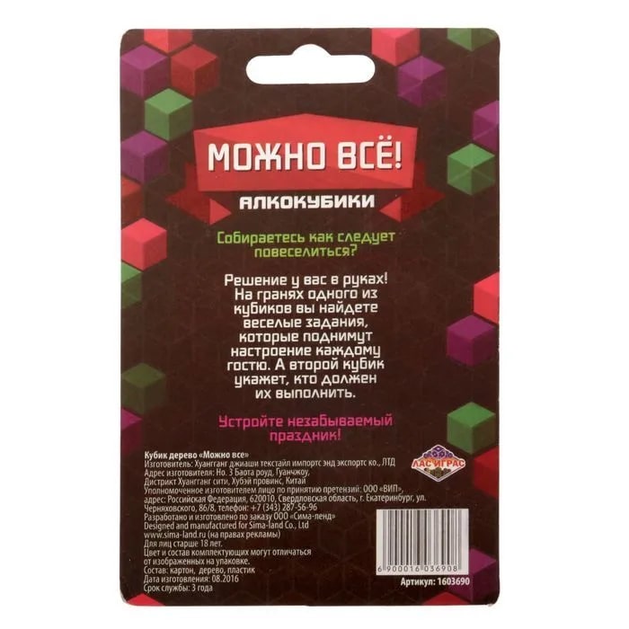 Купить кубик "можно все", алкокубики для принятия решений от 60 руб. с доставкой до пункта выдачи в Бирске. Интернет магазин ДекаМаркет. Оплата при получении.